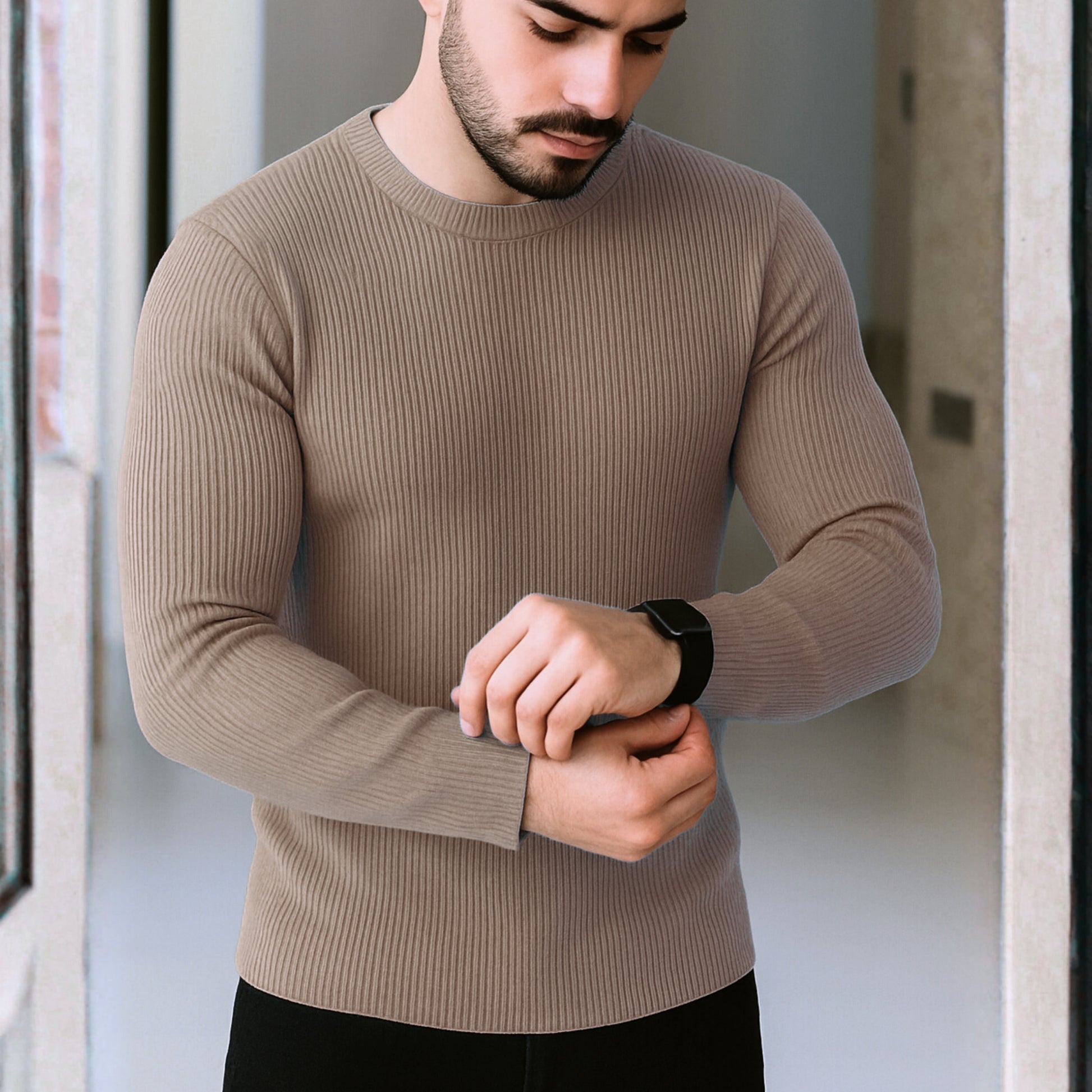 Premium Full Sleeve Rib T-Shirt Brown